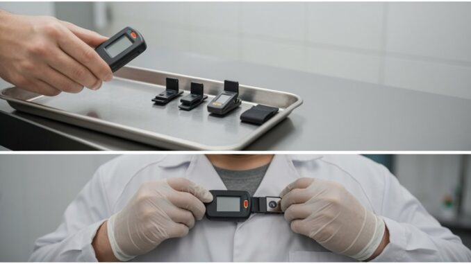 Ein persönlicher Dosimeter sollte so gewählt werden, dass er zum Strahlungstyp, Energiespektrum und Expositionsgeometrie passt, mit dokumentierter Kalibrierung und geeigneter Empfindlichkeit. Energiekompensierte TLDs, OSL‑Abzeichen, elektronische Dosimeter, Dünnfensterdetektoren für Beta sowie moderierte oder rückstoßbasierte Sensoren für Neutronen sind übliche Optionen. Am standardisierten Befestigungspunkt (Kragen, Brust, Taille) tragen, entsprechend der Frage, ob die Dosis unter oder über einer Blei‑Schürze gemessen werden soll. Tägliche Sicht- und Funktionskontrollen, sachgerechte Aufbewahrung und rechtzeitige Neukalibrierung durchführen. Weiterführende Hinweise erläutern Platzierungsnuancen, häufige Fehler und Korrekturmaßnahmen.